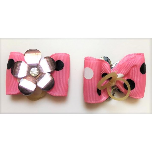 This flower looks like reflective lucite! Our Beautiful and Fun Hair Bows for your Dog are Hand Made and slightly stiffened just enough to hold there shape. They are attached with two rubber bands. 1" tall 1 1/4" wide. Limited Edition. Once they're gone, they're gone forever!