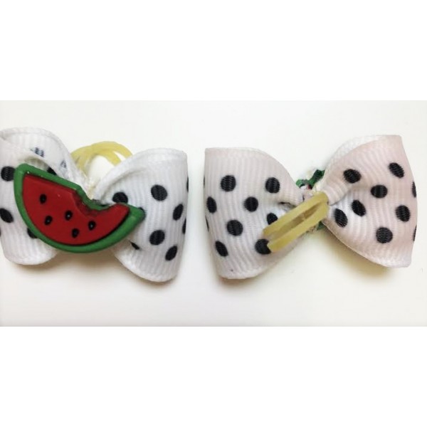Our Beautiful and Fun Hair Bows for your Dog are Hand Made and slightly stiffened just enough to hold there shape. They are attached with two rubber bands. 1" tall 1 1/4" wide. Limited Edition. Once they're gone, they're gone forever!