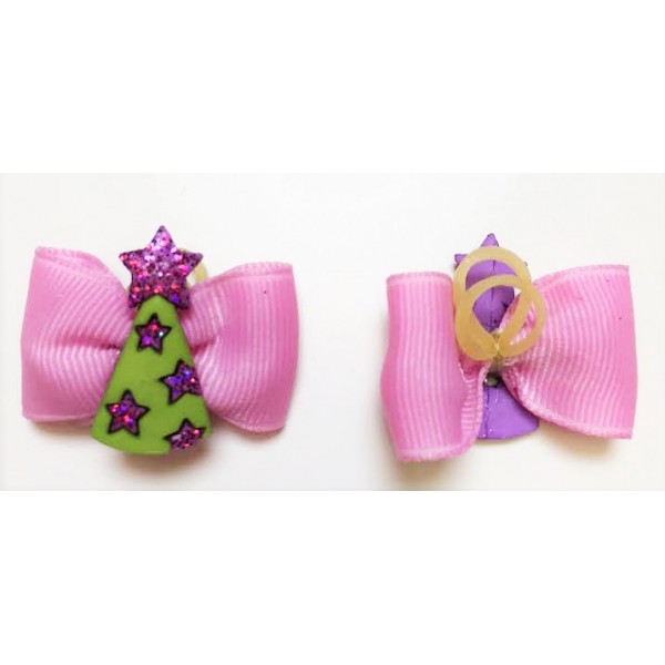 Our Beautiful and Fun Hair Bows for your Dog are Hand Made and slightly stiffened just enough to hold there shape. They are attached with two rubber bands. 1" tall 1 1/4" wide.  Limited Edition. Once they're gone, they're gone forever!