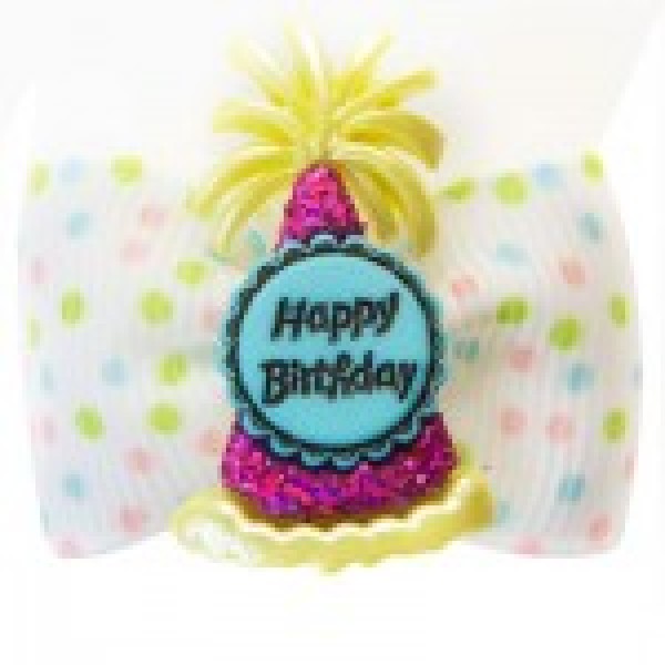 Your dog deserves a birthday bow! Add some glam to your fabulous pooch. This bow is the perfect accent for that special day! Our Beautiful and Fun Hair Bows for your Dog are Hand Made and slightly stiffened just enough to hold there shape. They are attached with two rubber bands. 1" tall x 1 1/4" wide.Limited Edition. Once they're gone they're gone forever.