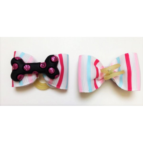 Our Beautiful and Fun Hair Bows for your Dog are Hand Made and slightly stiffened just enough to hold there shape. They are attached with two rubber bands. 1" tall 1 1/4" wide.  Limited Edition. Once they're gone, they're gone forever!