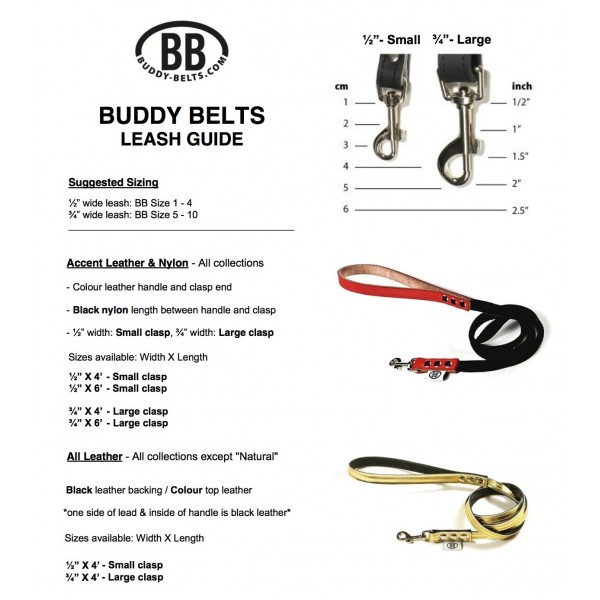 Quality workmanship and care are engineered into every Buddy Belt product. Buddy Belt offers a 90 day guarantee on any manufacturing or hardware defects. This guarantee does not cover leather breakage due to chewing or anything else that compromises the integrity of the material beyond normal wear. Buddy Belts have been thoroughly tried and tested to ensure that the materials used are of the best quality.