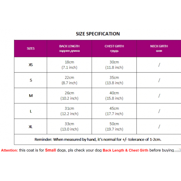 Please measure chest girth and length from neck to tail to determine correct size.