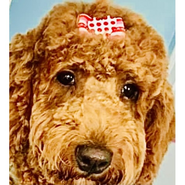 We heart this bow! Irresistibly cute. Our Beautiful and Fun Hair Bows for your Dog are Hand Made and slightly stiffened just enough to hold their shape. They are attached with two rubber bands. 1" tall x 1 1/4" wide. Limited Edition. Once they are gone they are gone forever.