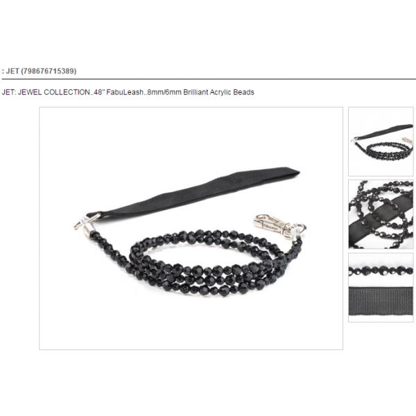 Like a chandelier, this elegant leash will turn heads! This 48" leash flaunts 10mm x 6 mm brilliant acryllic beads. The PVC handle with rhinestone studs finishes off this exquisite look. This leash has been pull tested up to 160 lbs.