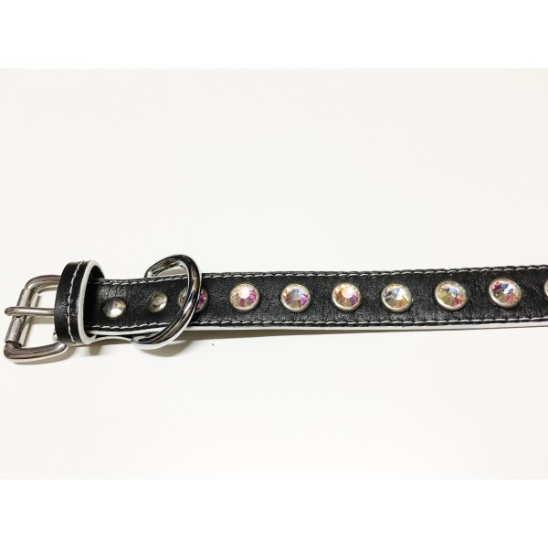 Our NEW Designer Sandradee Collection. Genuine Italian Black leather, Swarovski Crystals, matching handstitching and handpainted edges. These dog collars are beautiful & striking on any dog and very light in weight to not strain your dogs neck. Made In the USA