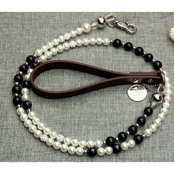 Strong bike cable threaded through pearls makes this elegant leash long lasting.