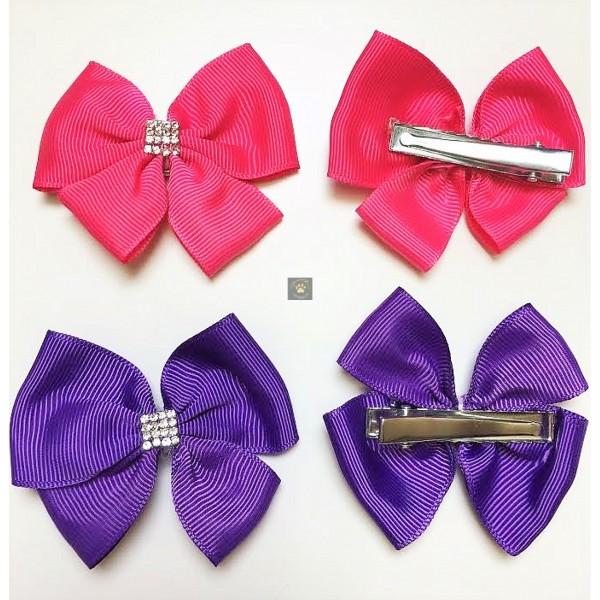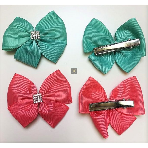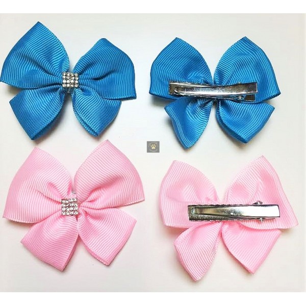 Add beauty and bling to your pet. These clip on bows have teeth to grip hair, collar, or harness.